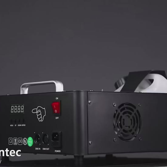 Die Steuerung erfolgt präzise über DMX 512 (13 Kanäle) oder bequem per Fernbedienung, sodass sich die Maschine optimal in jede Licht- und Nebelshow integrieren lässt.